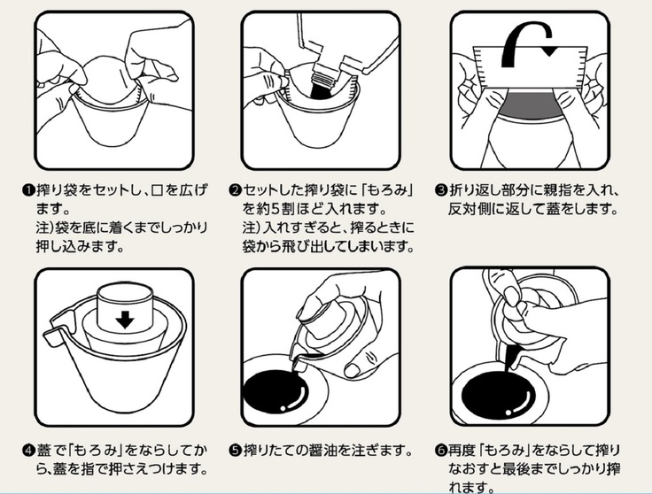 醤油搾り器の説明書です。簡単に醤油が搾れます!
