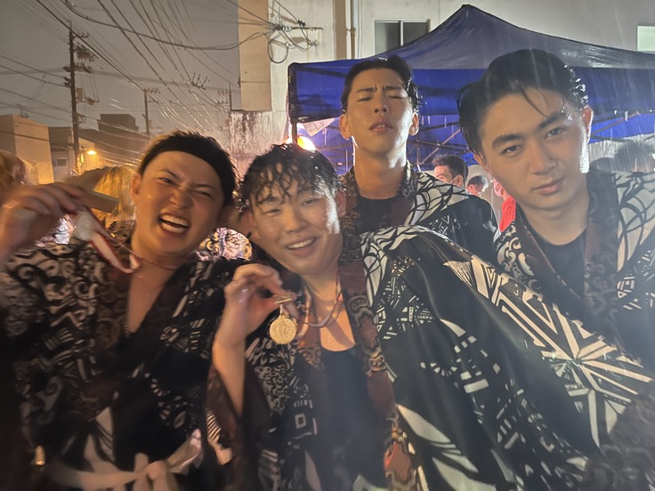 そして、最終日の愛宕町では、大雨に見舞われましたが、それが最高の思い出となりました。雨にも負けず、参加者は笑顔で踊り、観客も熱気に包まれました。雨の中でのパフォーマンスは、思い出深い体験となり、よさこい祭りの魅力をより一層感じることができました。