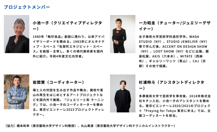 本日は、東京ビエンナーレ2023で進行中のリンケージ(プロジェクト)のひとつ「ジュエリーと街 ラーニング」についてご紹介させていただきます。先日複数のリンケージを一挙にご紹介した際から、さらに詳しい背景や、参加者募集についてもお伝えしたいと思いますので、ぜひご覧いただけたら幸いです。