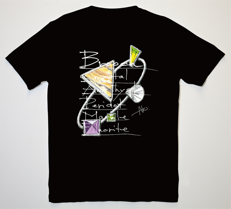 東京ビエンナーレ2023では、ジュエリーの再発見・再創造を通じて人と街が出会う、リンケージ「ジュエリーと街 ラーニング」にて、チューターを務めるジュエリーデザイナーの一力昭圭(いちりき・あき)さん。小池一子ディレクターやリンケージメンバーと共に、公募参加者の皆さんと協働します。宝石の街といわれる御徒町周辺を舞台に、人間に一番身近なクリエーションといえるジュエリーをめぐる活動が進行中。今回のコラボTシャツには、多様な石がつながるドローイングを寄せてくださいました。