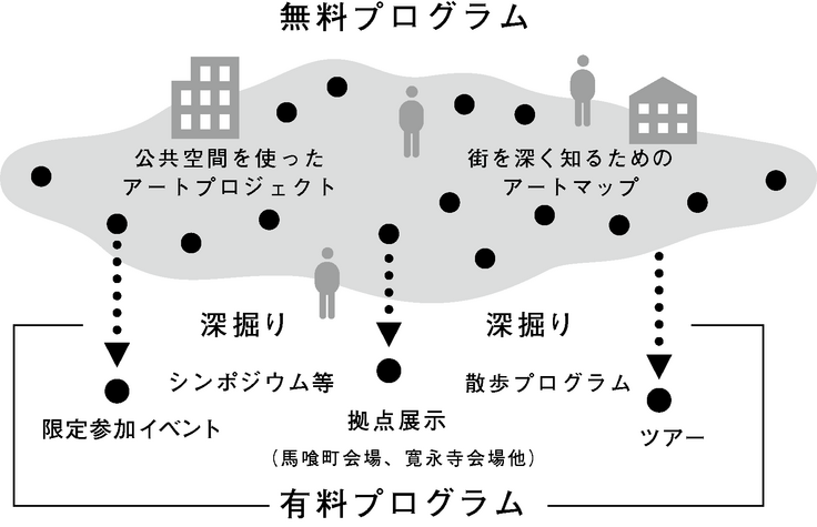 回を重ねて充実した開催を実現し、とくに、第2回の開催時には54の会場のうち50会場を無料エリアとできたことは、ひとえに市民の参加、何よりもクラウドファンディングへのご協力であったことを、ここに深く感謝いたします。