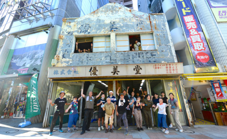 前々回、前回と東京ビエンナーレでプロジェクトを開催した東京都神田小川町「顔のYシャツ」は、残念ながら老朽化が進み、取り壊されてしまいました。一方で、戦前から佇むかつて額縁専門店だった「優美堂」は、空き家となっていた内部を片付け、構造を補強するなど建物を整備し、アーティストインレジデンスプログラム(AIR)を通して、地域コミュニティの国際文化交流が生まれるクリエイティブサロンとして再生させることができました。