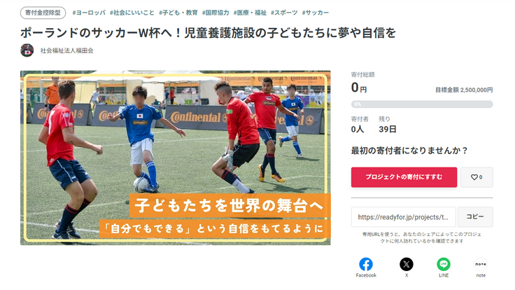 ポーランドのサッカーW杯へ!児童養護施設の子どもたちに夢や自信を
