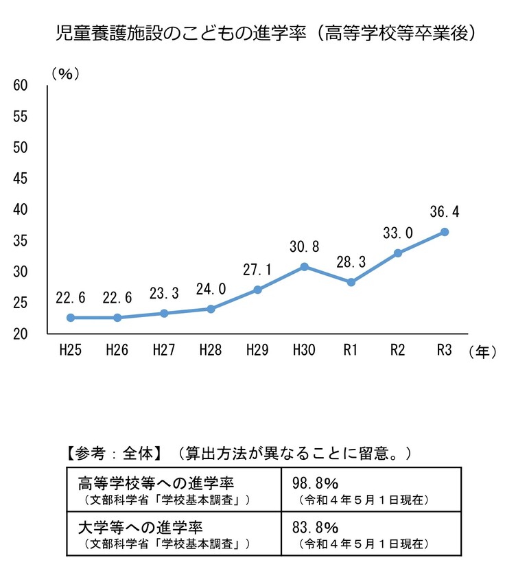 参考:こども家庭庁「児童養護施設のこどもの進学率に関する指標