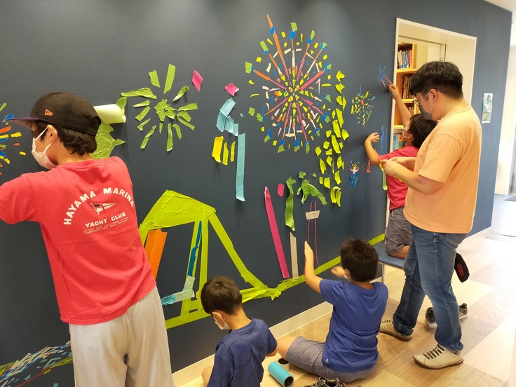 一人でひとつの花火を作りあげるだけでなく、マスキングテープをシェアして複数名で作成している様子も見られました。