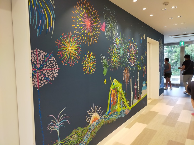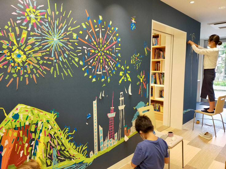 自然と都会の融合が壁一面に表現され、二子玉川に新校舎を構えるTIPSに相応しい作品が仕上がりました。