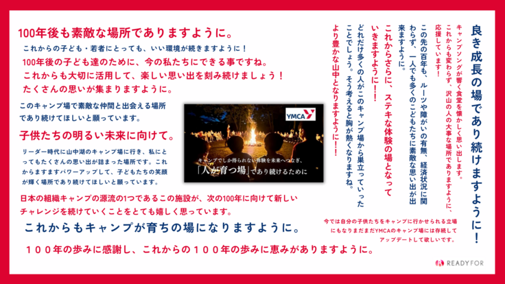これから先100年も山中湖とYMCAのファンが増え続けることを祈ってます!