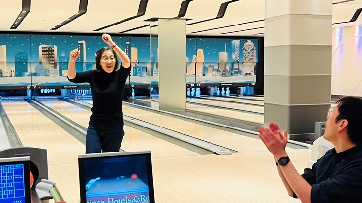 ザ・プリンスパークタワー東京内のボウリングサロンを御厚意で貸切利用させていただき、午前の部と午後の部合わせて21組70人に参加いただきました。