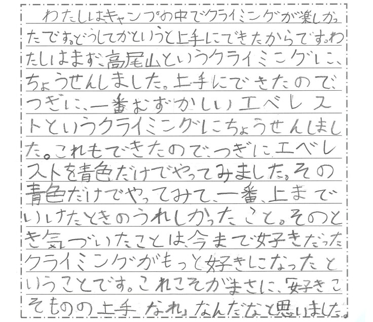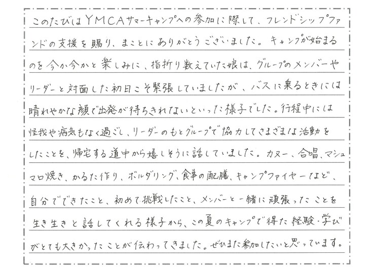 この夏、この支援を活用してキャンプに参加したお子様・保護者より、感想文が届ききました。