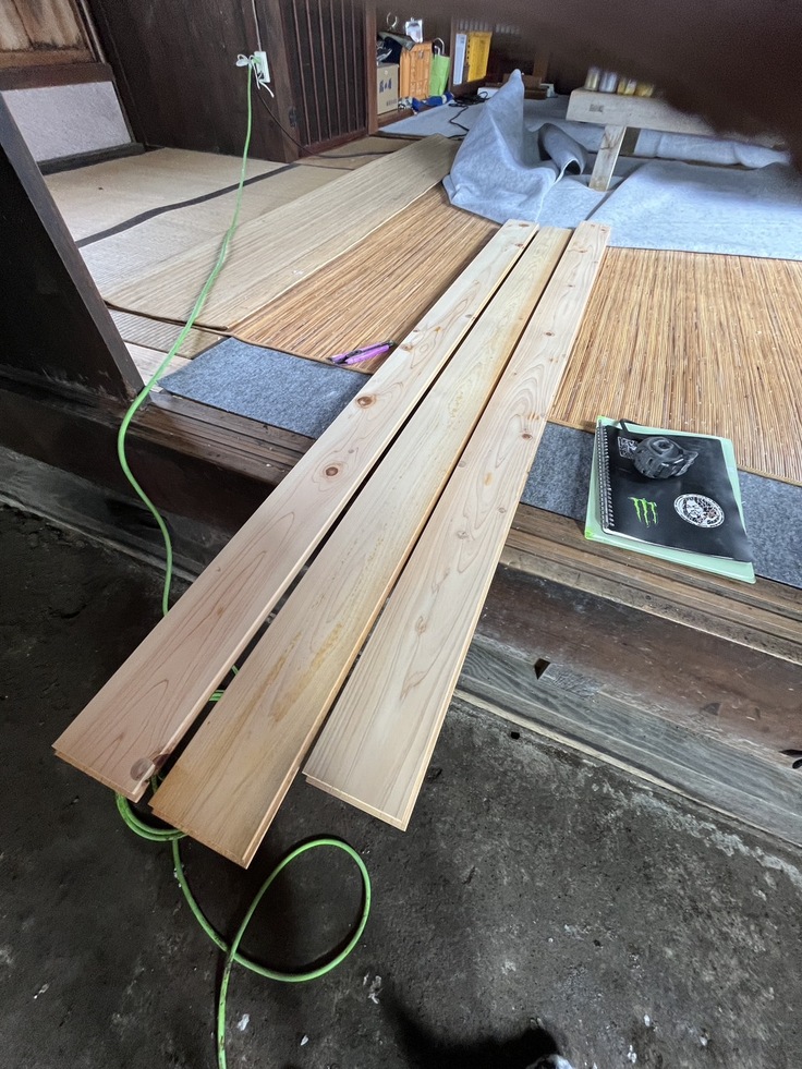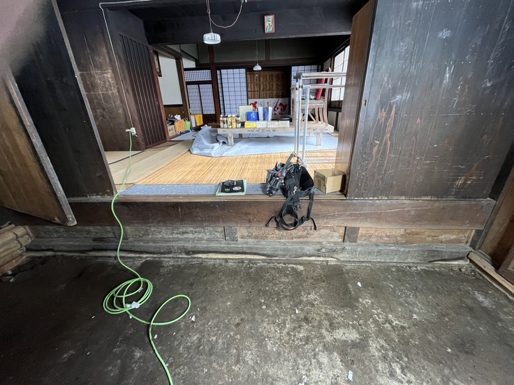 トイレ周り、土間からの板羽の計測や下駄箱の位置などの確認を行いました。