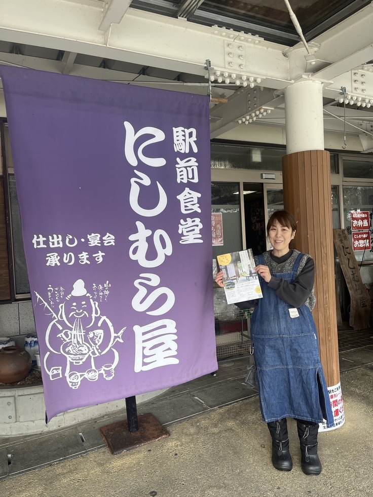 日南町生山駅前食堂にしむら屋様にチラシを置かせていただきました!