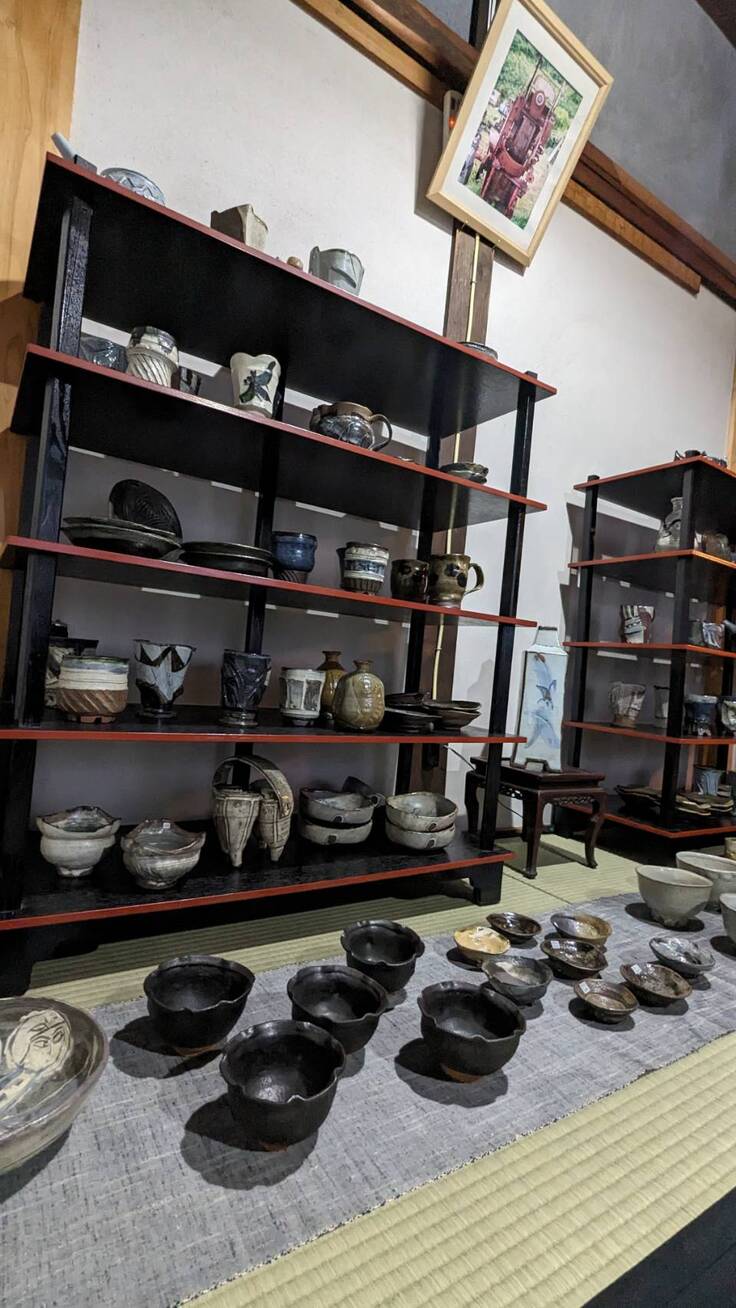 お家はお店が併設されていてたくさんの陶芸作品が飾られていました。
