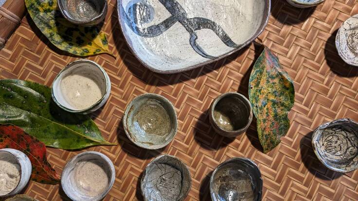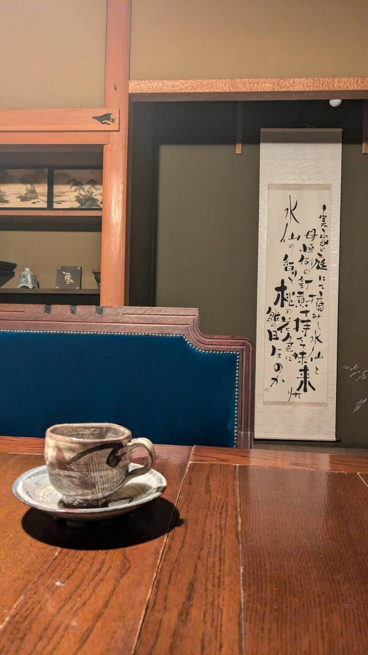本久代邸での珈琲やお茶は岡本暉生作品でいただけます。
