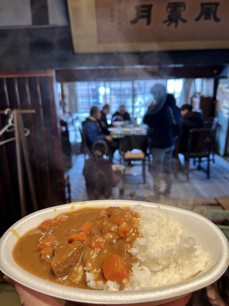 (お昼はメンバー大柄瑞穂さんまかないのイノシシカレー。イノシシ肉は副代表栩木さん、人参は坪倉農園からの差し入れで作っていただきました)