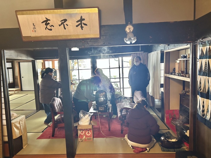 (ヒーター、ストーブたくさんつけていますが、広すぎて追いつかない寒さです)