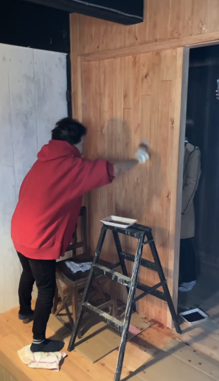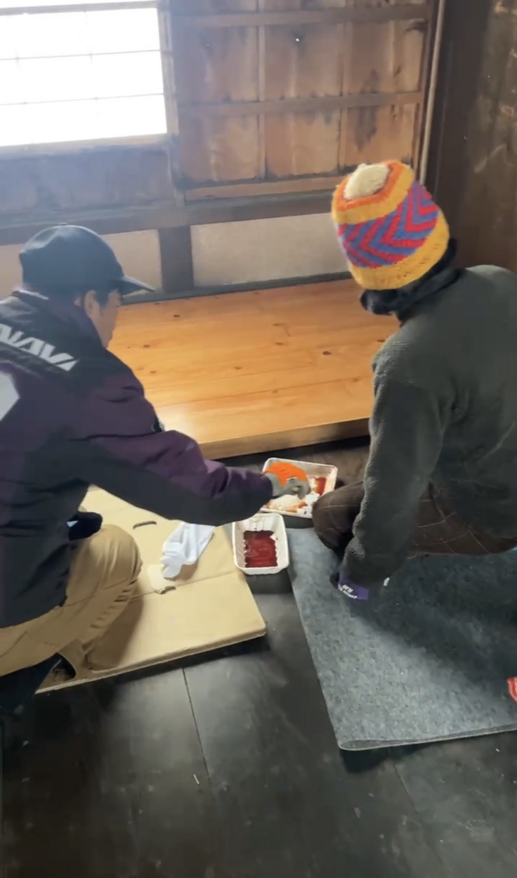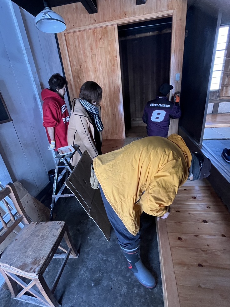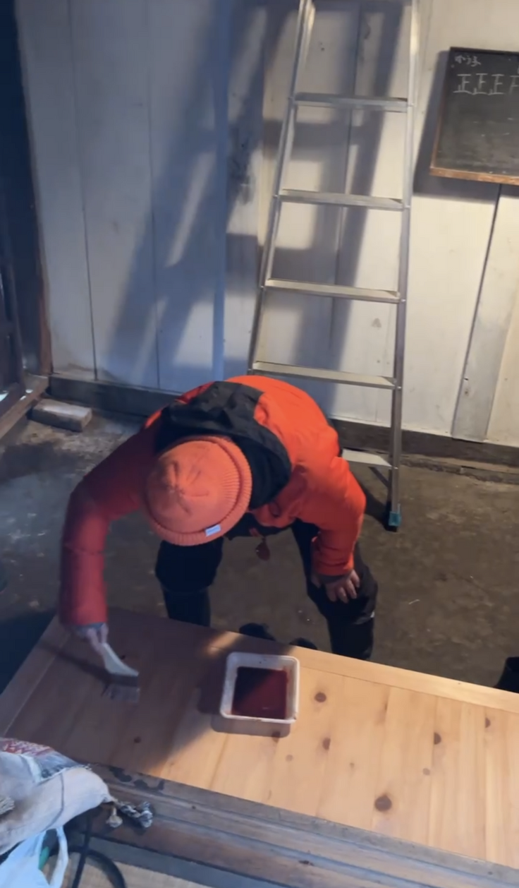 また大雪が降る中、第二回柿渋塗りを行いました!