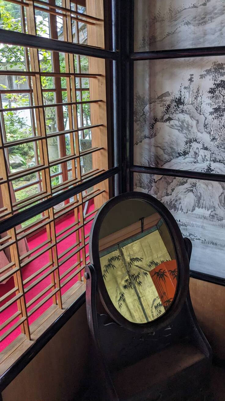 (たくさんのガラス窓はお掃除こそ大変ですが石庭がよく見えてお部屋と調和し、とても美しいのです)