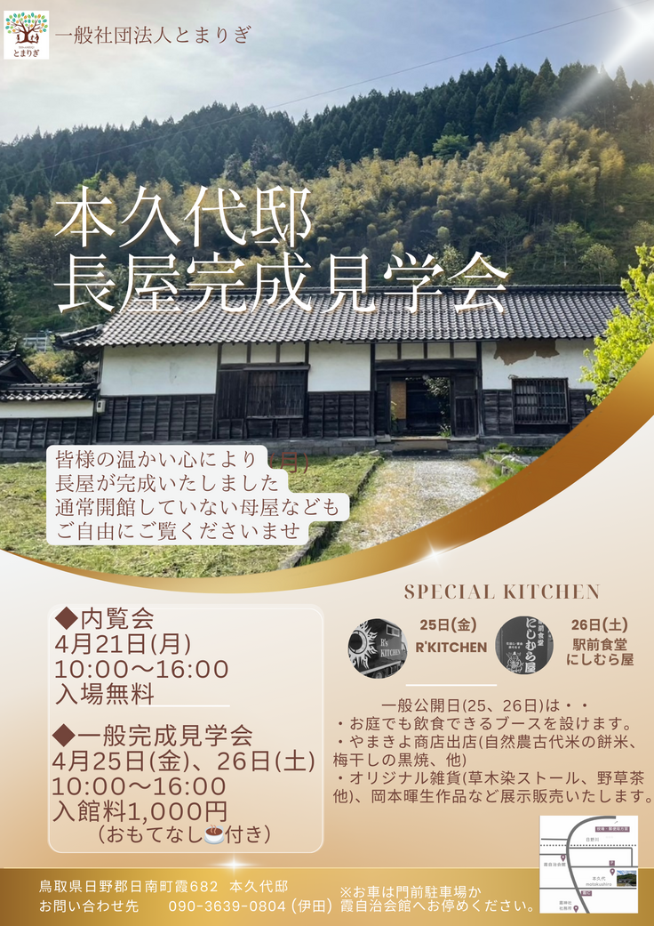 ※オリジナル雑貨(シルクの草木染ストール、野草茶、他)、故岡本暉生陶芸作品、アンティーク古物など販売なども行います。
