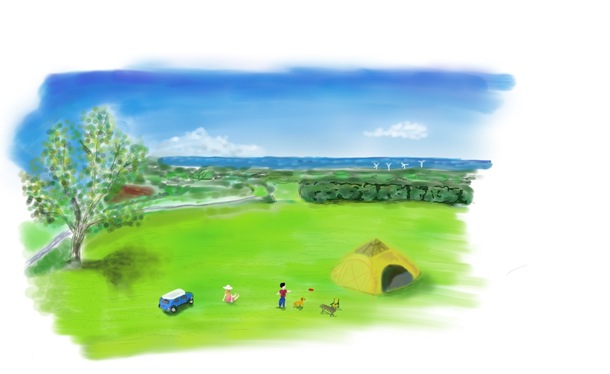 「グランピングテントを一棟貸しして芝生と景色を独占してもらう」