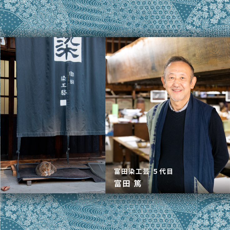 はじめまして、「東京の染小紋」である着物を代々染め続けている「富田染工芸」の5代目、富田 篤です。1882(明治15)年の工房設立から、これまで140年にわたって着物の手染め技術、そしてその技法に欠かせない型紙を継承してきました。