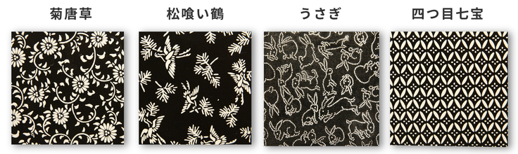 12万枚という膨大なコレクションの中には、舞鶴や扇、青海波といった有名なものから大名行列・茶の湯・海老・兎尽くしといった珍しいものまで多様で粋な模様が存在します。
