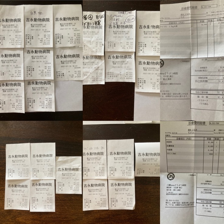 日々の生活に追われて、領収書の整理もしておりませんでしたが、今残っているものだけ並べてみました。