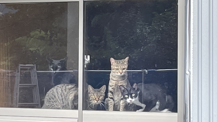 猫ちゃんは外が見えるところが多いほど気持ちが安らぎ、エアコンで寒い時などは自分たちで温度調節をするために日向ぼっこをしています。