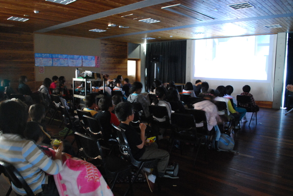 後日、この体育館で大人もまじって上映会を実施。