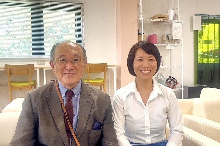 福永と、本プロジェクト実行担当者:スウィーツ「ともしび奨学金」担当:川戸佳織