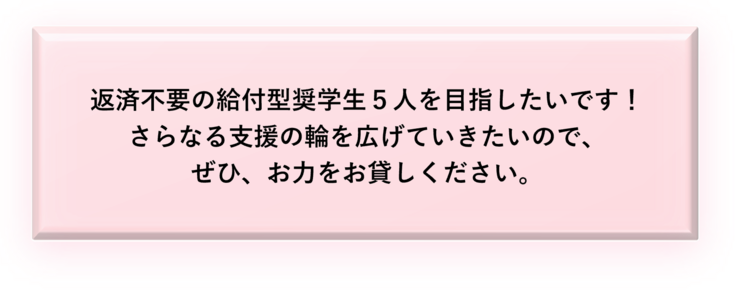 また、奨学金活動の永続性を見据えて、奨学生5人の状態で10年間は継続させたいと思っていますので、今回、活動事業の拡充のためにその費用の一部をクラウドファンディングで募ることにしました。