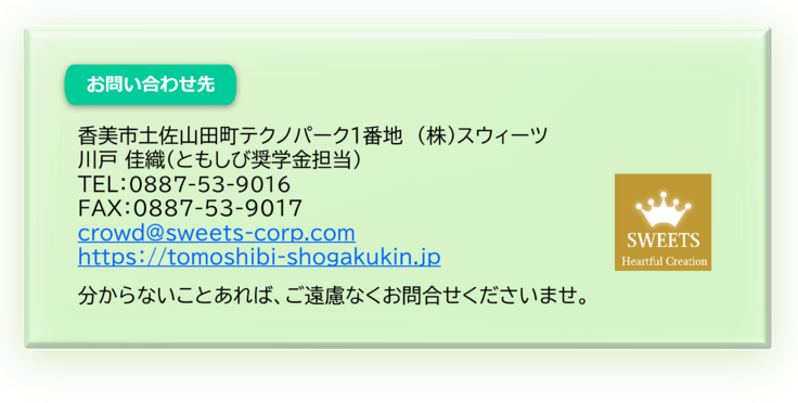 (株)スウィーツ 「ともしび奨学金」係