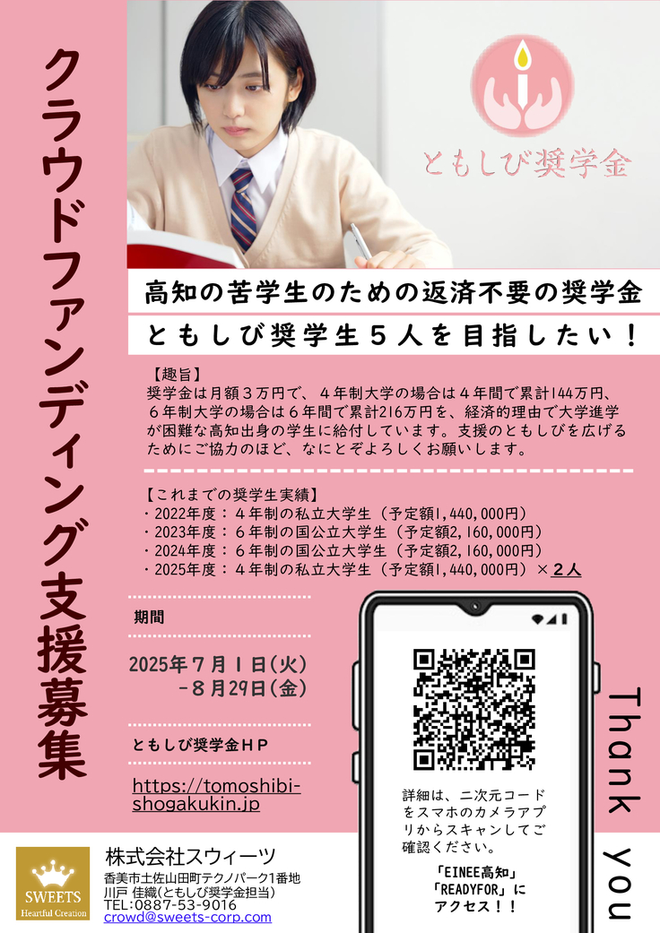 【2025年7月1日】ともしび奨学金のクラウドファンディングスタートしました!!