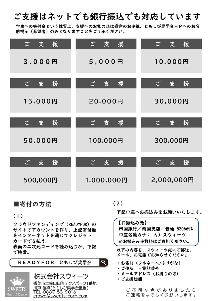➡希望者のみともしび奨学金HPにお名前を掲載いたします。個人名、企業名、団体名などイニシャルも可能です。