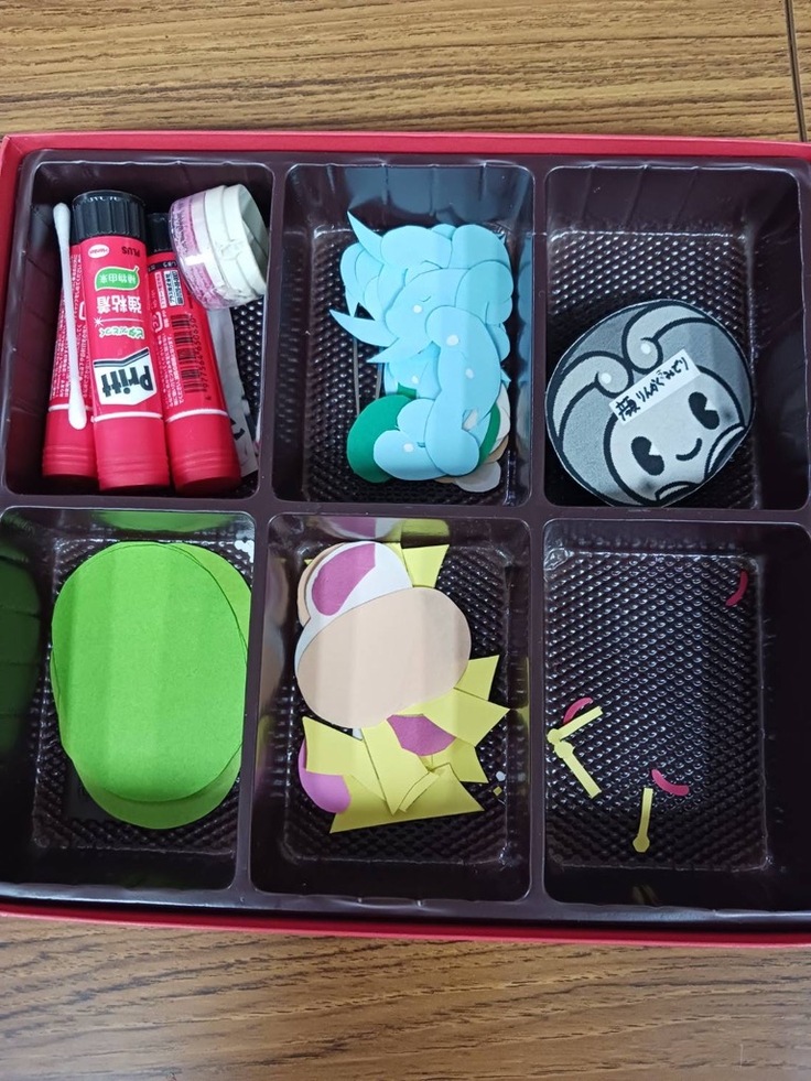 こんなふうに、お菓子の空き箱に細かいパーツを入れて♪