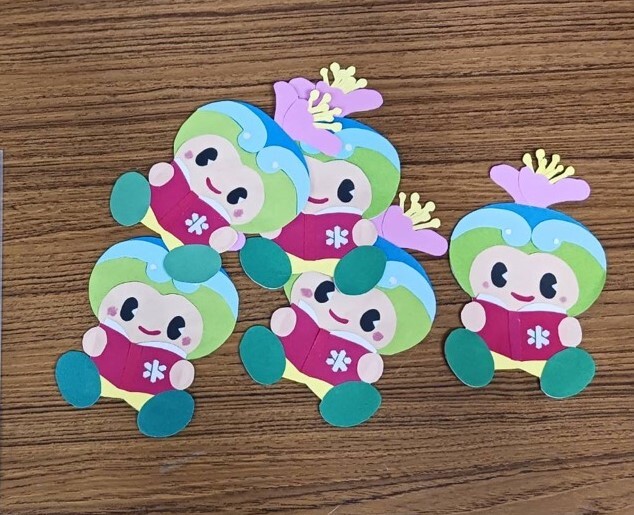とっぴーのからだのパーツ24個と、頭のつつじのおしべ6本。 合計30のパーツを、一つひとつ丁寧に貼り合わせて作っています。 (ちなみに、富田林の市花は「つつじ」なんですよ🌺)
