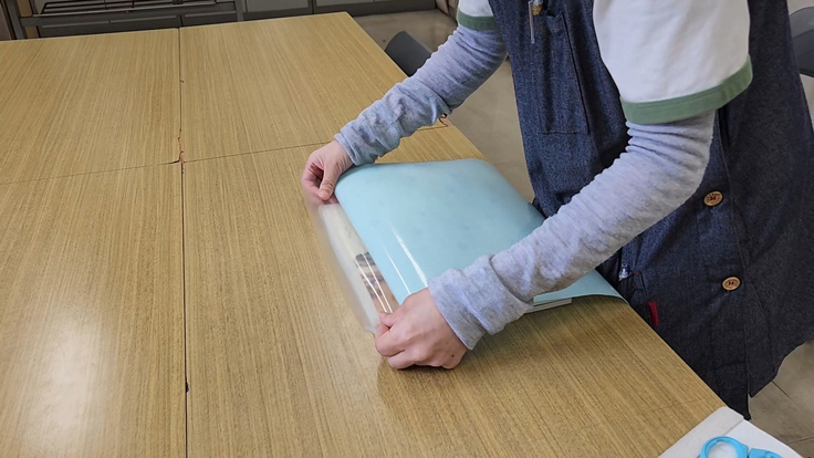 そして、空気が入らないように気をつけながら、慎重に貼り付けていきます。
