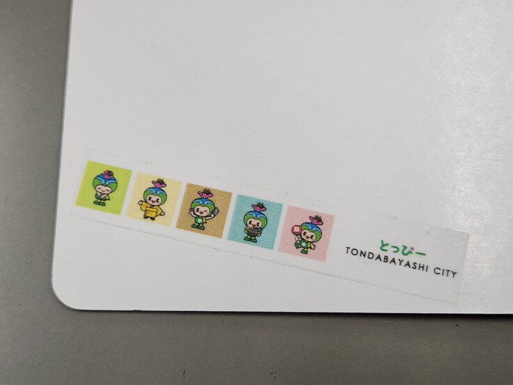 このマスキングテープには本市のイメージキャラクター、「とっぴー」がデザインされています。