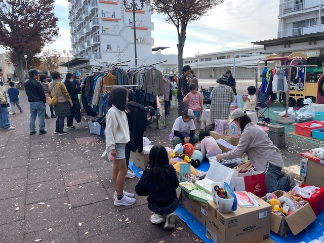 会場には地域の皆さまからご提供いただいた日用品や衣類、雑貨などが並び、多くの方に足を運んでいただきました。
