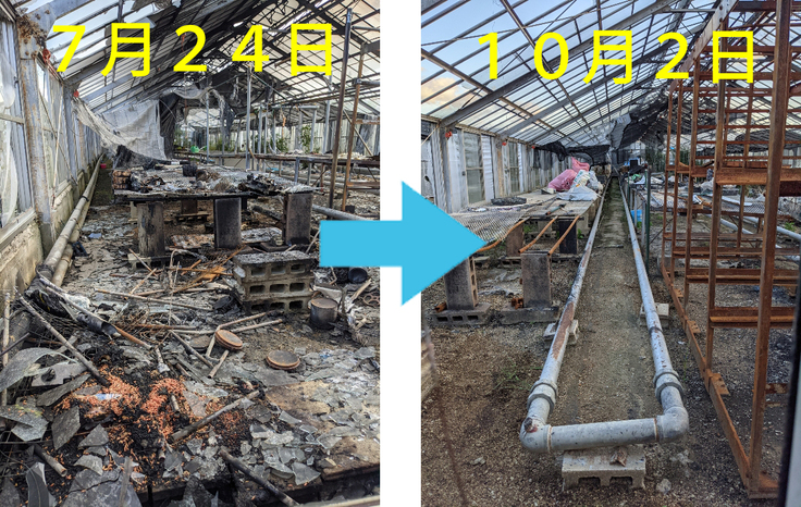 苗を育てている施設でしたので育苗用の機械や資材があとかたもなく全て焼けてしまいました。