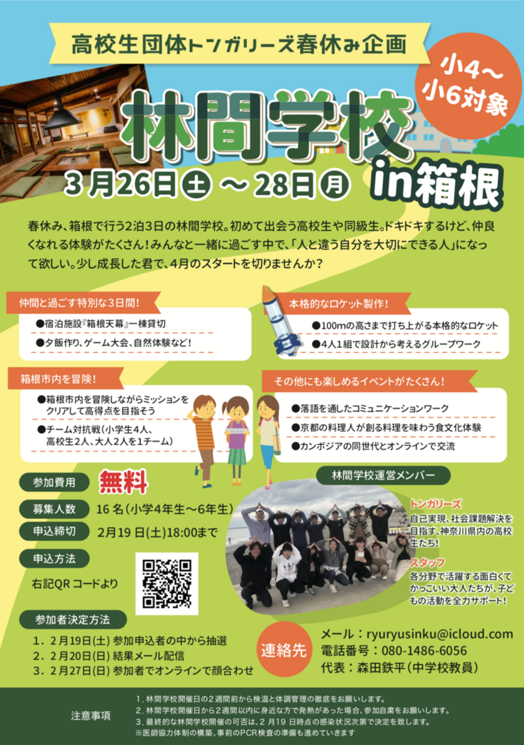 この想いを共感していただいた方、一緒に林間学校を成功させましょう!