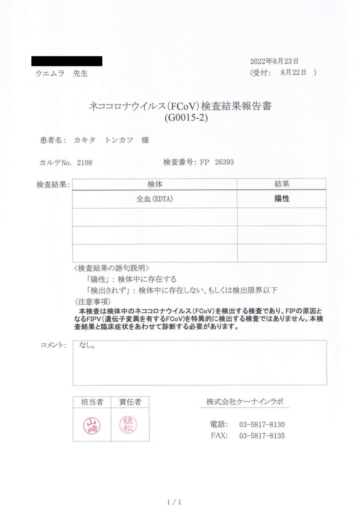 ▼とんかつがFIPと診断されるまで