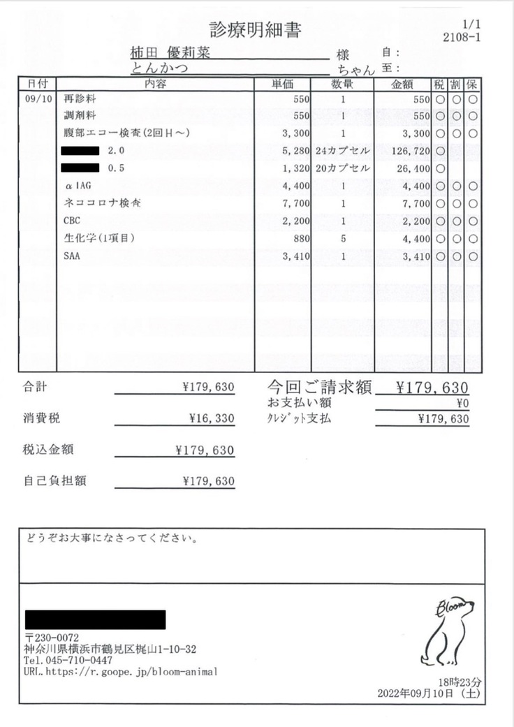 考えたくありませんが、万が一、とんかつが治療中に亡くなってしまった場合、誠に勝手ながらいただいた支援金については、返金はせずいままでの治療費に当てさせていただきます。