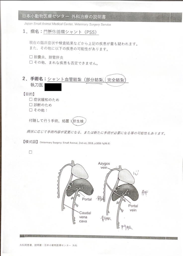 検査の結果は先天性の門脈体循環シャントと診断されました。手術が成功すれば、完治が望めるとの事だったので、リスクも有りますが手術を選びました。