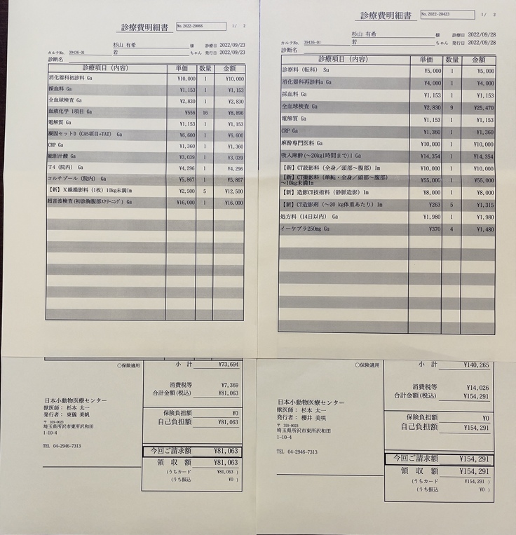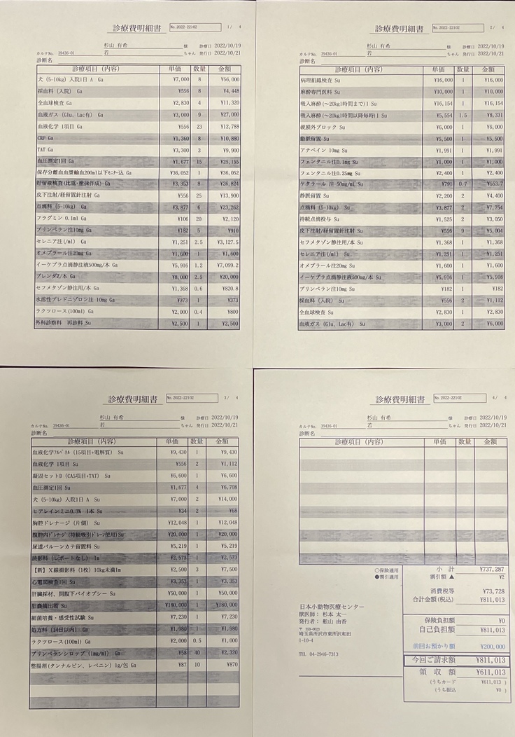 因みに、当時の診断と今までにかかった費用はこちらになります。
