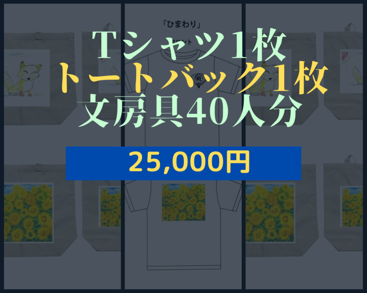 「Tシャツ1枚とトートバック1枚、感謝の手紙 文房具40人分」