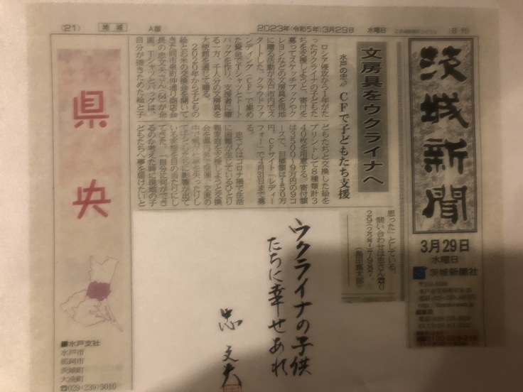2023年3月29日付けの茨城新聞に、クラウドファンディングの記事が掲載されました。