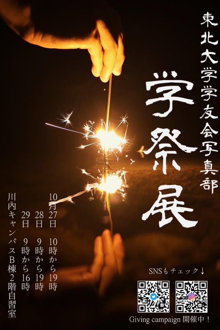 さて、東北大学学友会写真部は10月27日(金)~29日(日)に、東北大学祭で学祭展を開催しました。