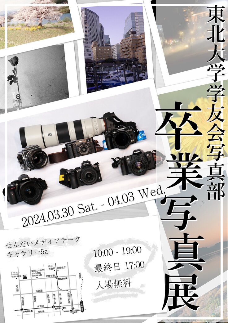 東北大学学友会写真部は3/30~4/3に、せんだいメディアテークで卒業展覧会と三月展を同時開催しております。