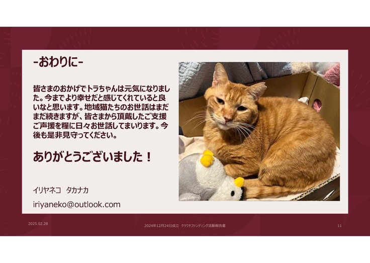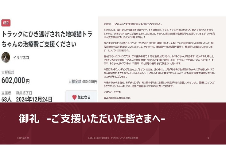 改めまして、トラちゃんへのご支援ありがとうございました。