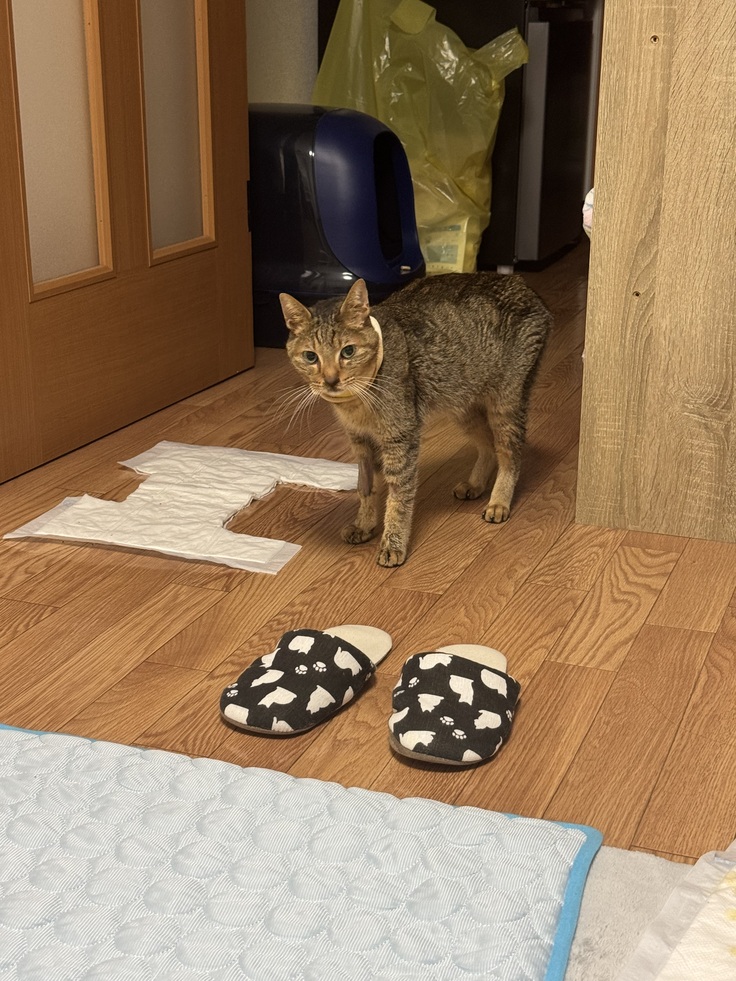 とらちゃんの様子は昨日と変わらず、元気ではありませんが、入院から帰ってきた初日のようにぐったりはしていません。